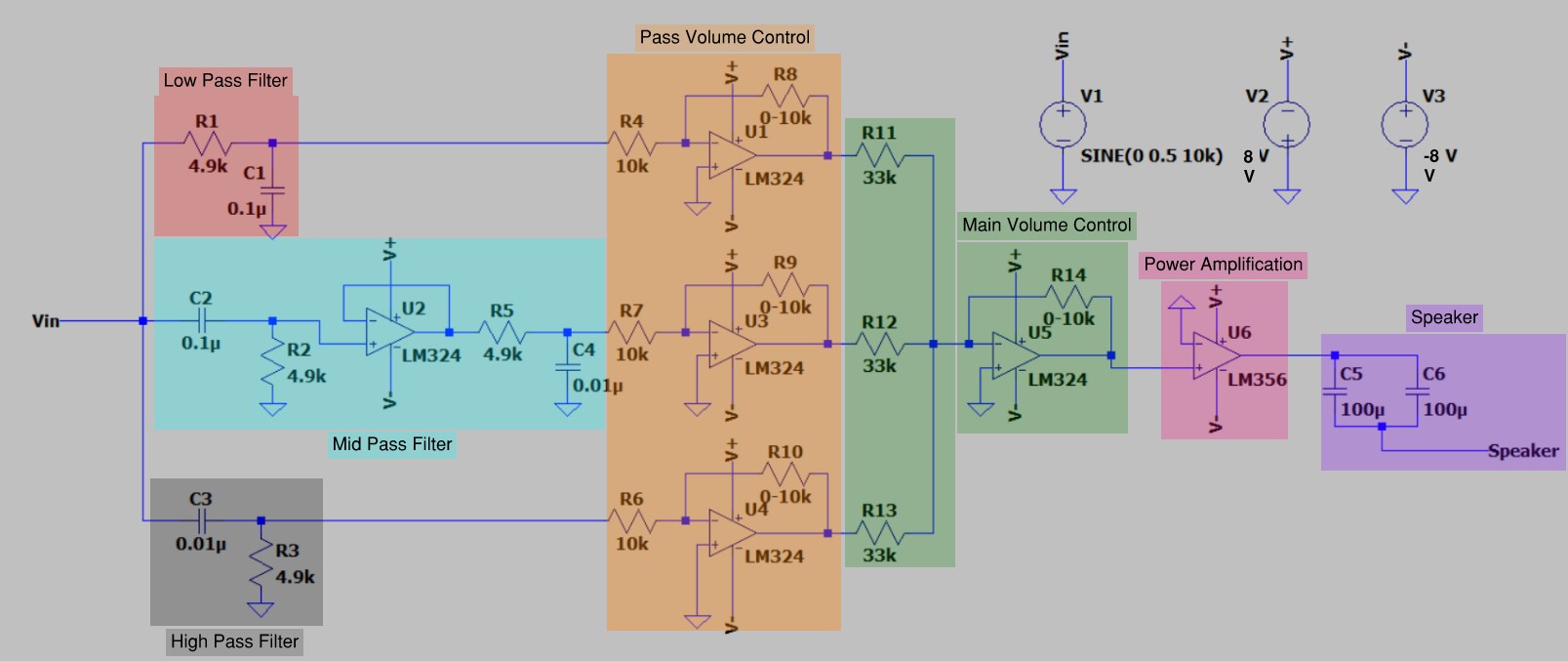 I was responsible for the full design, construction, and testing of a functional audio equalizer circuit.