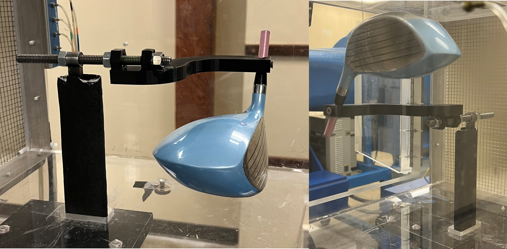 As a member of the team, I helped to investigate the aerodynamic properties of a high-end golf club driver head (Callaway XR 16) and a low-end club (Tour Jr). We measured drag and lift forces using a wind tunnel to quantify the performance differences.